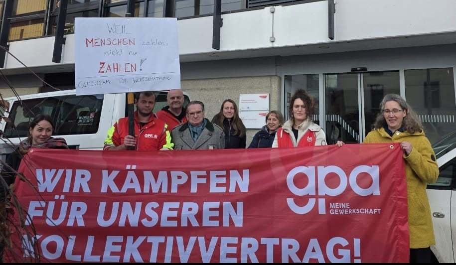 Auch die dritte Runde der Kollektivvertragsverhandlungen für 130.000 Kolleg:innen in der Sozialwirtschaft ist erneut ergebnislos zu Ende gegangen. Die Arbeitgeber haben ein Angebot von durchschnittlich 1,71 Prozent auf KV-Gehälter und 1,3 Prozent auf IST-Gehälter für 2026 und 1,65 Prozent auf KV- und IST-Gehälter für 2027 vorgelegt. Das ist für uns weiterhin unzureichend – deshalb bereiten wir uns nun auf Warnstreiks vor, um zu zeigen, dass wir für einen fairen Abschluss kämpfen werden!